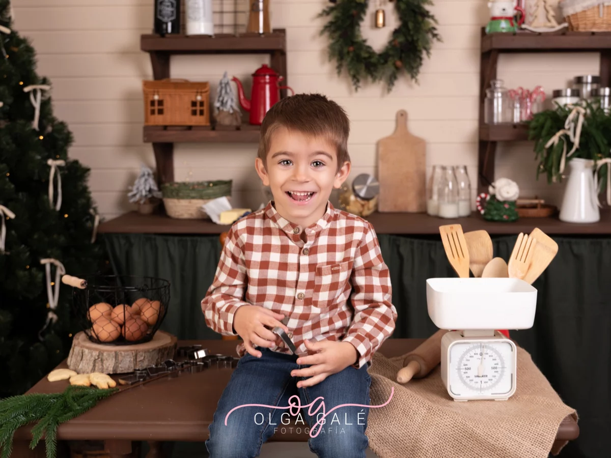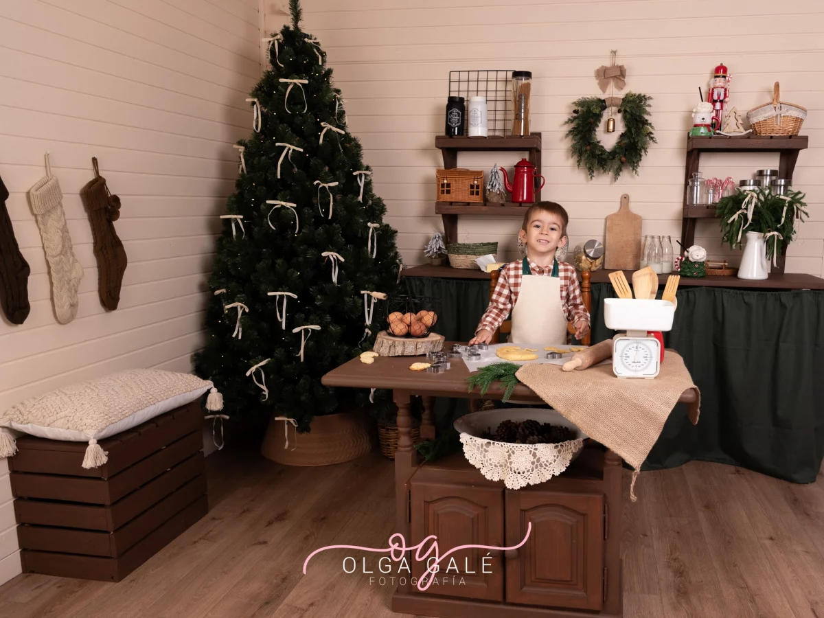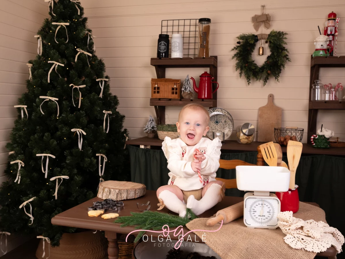 Este año quiero invitarte a algo muy especial: nuestra cocina navideña . Prepararemos unas deliciosas galletas, nos mancharemos de harina y lo pasaremos en grande entre risas y ese inconfundible aroma a canela que lo impregna todo . También tendremos otro decorado más sencillito para todas las edades y otro enfocado a bebés de menos de 1 año. Aún así todos los niños podrán tener fotos en el decorado principal.