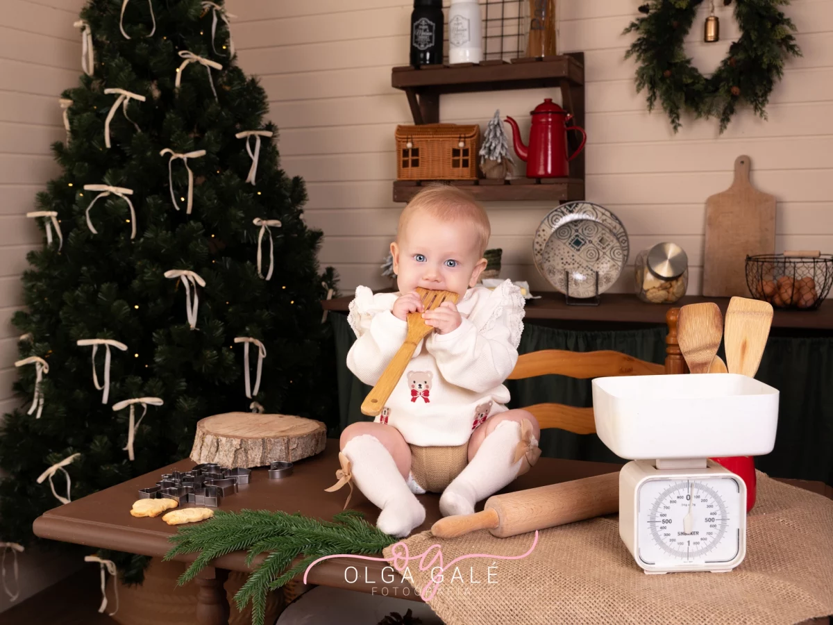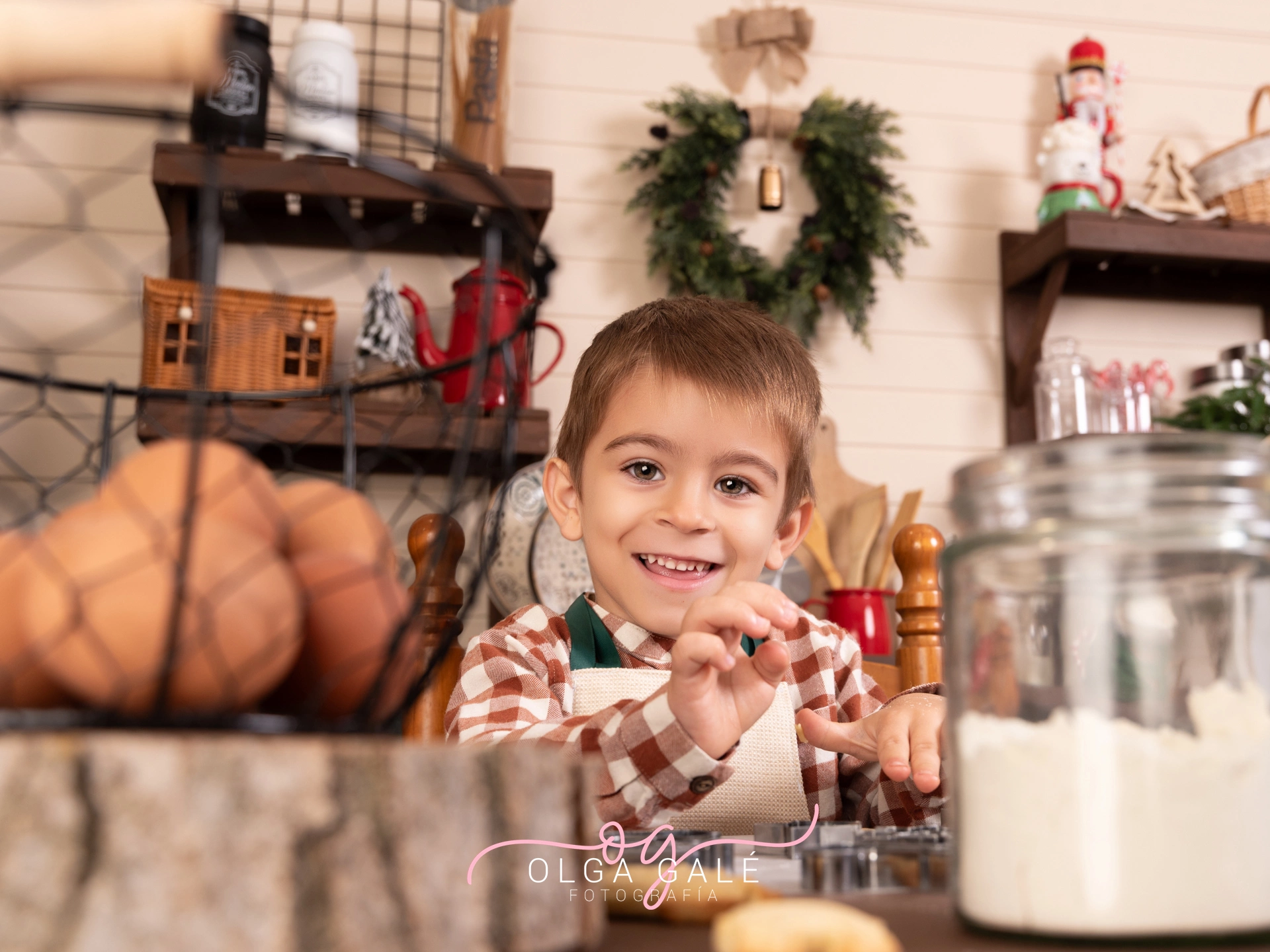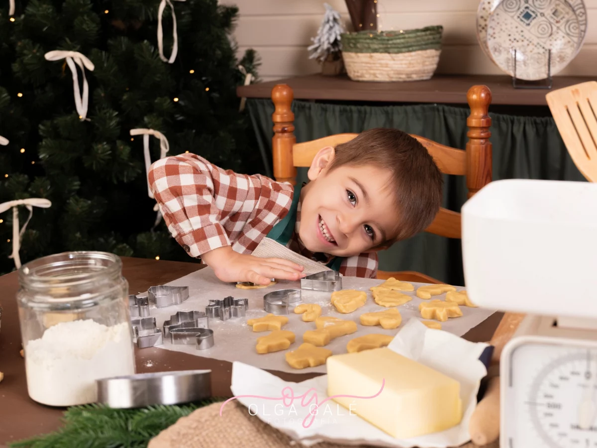 Este año quiero invitarte a algo muy especial: nuestra cocina navideña . Prepararemos unas deliciosas galletas, nos mancharemos de harina y lo pasaremos en grande entre risas y ese inconfundible aroma a canela que lo impregna todo . También tendremos otro decorado más sencillito para todas las edades y otro enfocado a bebés de menos de 1 año. Aún así todos los niños podrán tener fotos en el decorado principal.