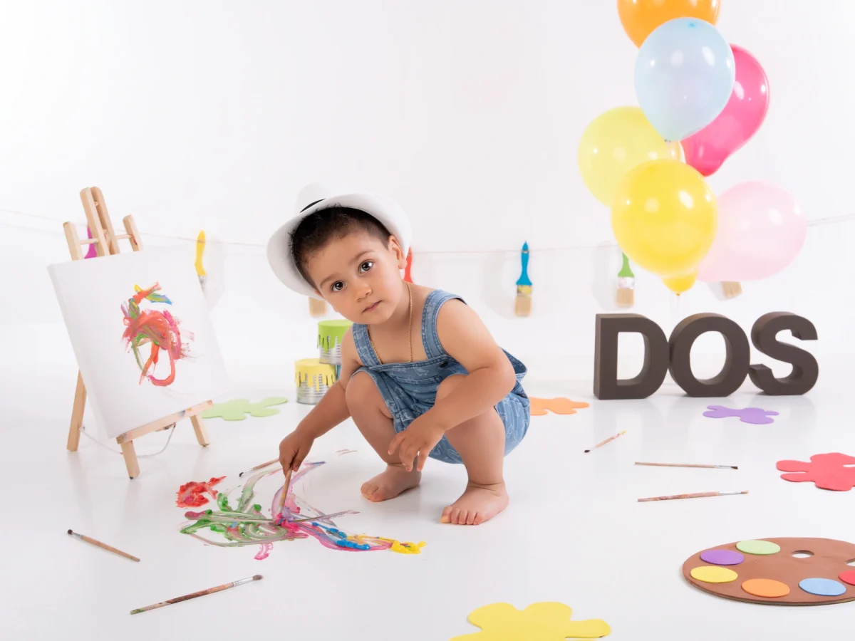 Estas sesiones se realizan para celebrar el segundo, tercero o incluso cuarto cumpleaños del niño. Si para el primer año realizamos las sesiones Smash Cake donde los peques destrozan una tarta, para los siguientes cumples dejamos que exploren y desarrollen su creatividad a través de la pintura.